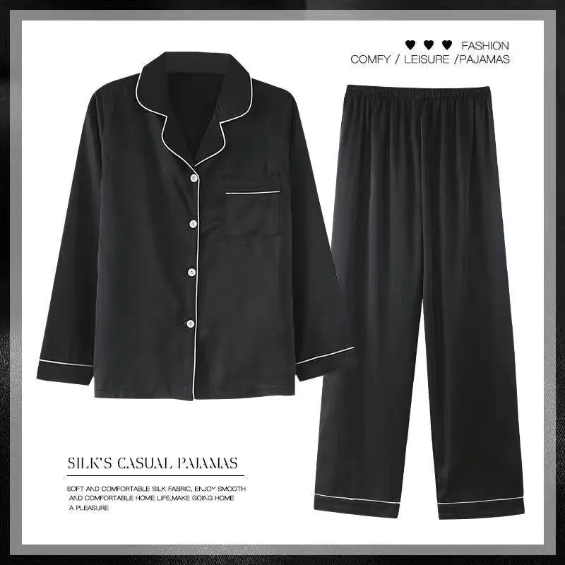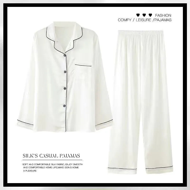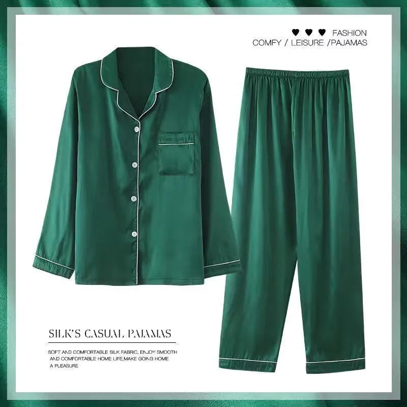 The Women's Spring and Autumn Thin Long Sleeve Silk Homewear Two-Piece Set offers the ultimate blend of comfort and luxury. Made from soft, breathable silk, this set is perfect for cozy nights in or relaxing at home. The lightweight fabric makes it ideal for spring and autumn, providing just the right amount of warmth without being too heavy. The elegant long sleeve top and matching bottoms create a chic yet comfortable look for lounging or sleepwear.